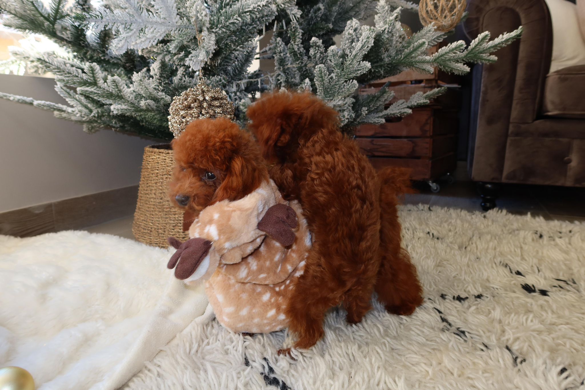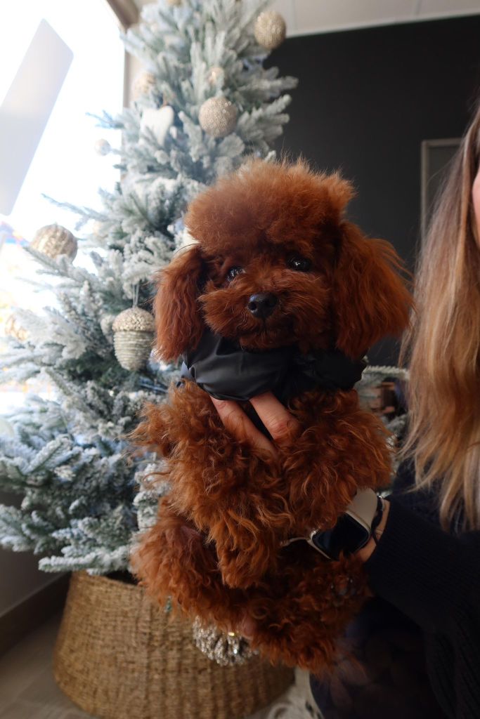 ¡Atención, amantes de la excelencia canina! Presentamos a un semental de élite: un caniche asiático rojo pimentón, de tamaño tea cup, y peso pluma, a su edad con 5 meses y medio no llega a 600 gr, y su peso extimado sera de 1 kg aproximadamente cuando alcance la edad adulta, pero con una presencia que deja huella. Este pequeño titán no solo es un derroche de color intenso y vibrante, sino que también posee una estructura compacta, un pelaje denso y rizado de calidad excepcional, y una elegancia natural que roba miradas.